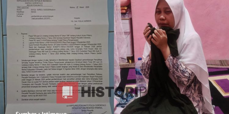 HistoriPos.com, Pohuwato — Penanganan kasus dugaan tindak pidana penganiayaan yang dialami oleh Almarhum Rezaldi Latif (Reza) di Desa Botubilotahu, Kecamatan Marisa, mulai memicu pertanyaan dari pihak keluarga korban. Meski berkas perkara atas nama berinisial FH alias Uci telah dinyatakan lengkap (P21) oleh Kejaksaan Negeri Pohuwato sejak Februari lalu, hingga kini proses pelimpahan tersangka dan barang bukti (Tahap II) belum juga terlaksana.